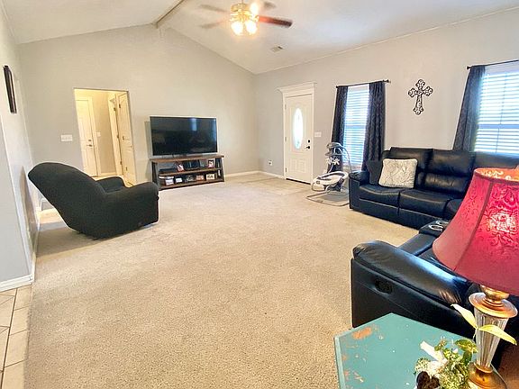 3 bedroom, 2 bath split floor plan on 2 acres. 9ft ceilings throughout entire home. Vaulted ceilings in living room and master. Large living area. Granite countertops. Large walk-in pantry. Walk-in closets throughout. Huge laundry room with utility sink. Tons of storage throughout. Oversized Jacuzzi tub and walk-in shower in master bath. Large walk-in master closet. Oversized heated and cooled two car garage. Detached 2 car paved carport. Outside storage building.