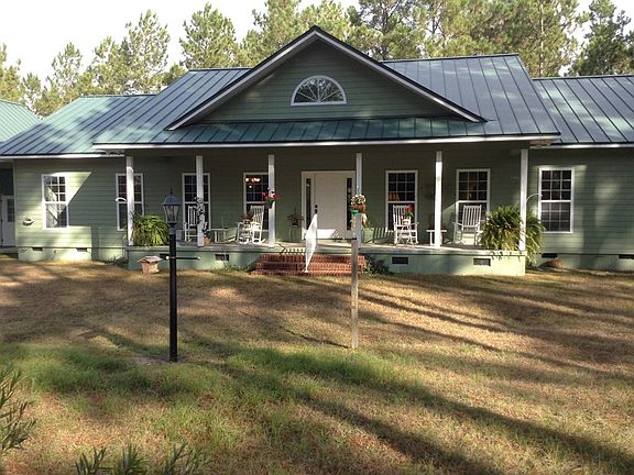 Private and Secluded 97 Acres with 2BR/2.5 Bath home set up as suites in a split floor plan. A total of 5 French doors open to the at 500+ sq. ft. screened patio that overlooks an impressive stand of slash pine all the way down to the ponds. There is about 70+/- Acres in Pine Trees and about 20 to 30 Acres in on field/pasture areas and ponds. There are currently 4 ponds on the property. The pond up front at one time, according to an older map and the soil map, was around 10 acres in size before it was drained. The property has an impressive amount of wildlife: Deer, Ducks, Turkey, and few other critters! Great recreation property for hunting or fishing and an impressive amount of timber that could stand to be thinned. One of the ponds has walkouts that could be used for retriever training. There is a two car garage attached to the home by a breezeway that has 704+/- sq ft per the tax records and another 352 sq ft of storage in the attic above the garage. Two AC Units for each side of home. Two Water Heaters. The property has an electronic gate with keypad for privacy and security and is mostly fenced on three sides with barbed wire. Reedy Creek forms part of the North Boundary of this property and offers some fine Wood Duck habitat. Trails have recently been mulched through the woods where buyers can get an idea of what the woods could look like if burned or thinned. Drone Property Video Available. 48 hours notice requested to show. (The home has had a good home inspection, Septic System inspected and property appraised out)