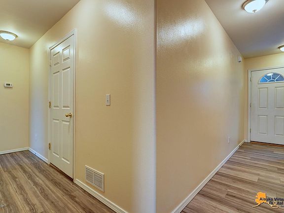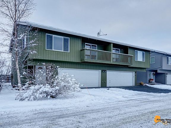 This home boasts an open floor plan with vaulted ceilings in the kitchen and living room with a gas fireplace plus a balcony off the dining area. Large bedroom upstairs with spacious walk in closet. Laundry room is located upstairs. Two bedrooms downstairs with adjoining full bath. Double car garage. Close to shopping, dining and JBER. Easy to show with 24 hours notice.