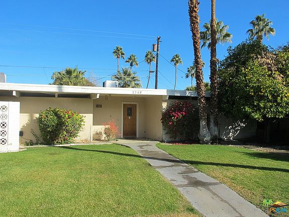 NOW PRICED $134,000 LESS THAN ANYTHING ELSE IN SUNRISE PARK. Great potential in very popular Mid-Century neighborhood. Everyone looks for the lowest priced home in a more expensive neighborhood, and this is it. Good bones, & more than ready to be brought up to the value of other homes in this hot, close to Downtown area. 3 bedrooms, 2 baths + den/office/media room or potential 4th bedroom. Original Mid-Century rock fireplace wall, extending outside onto the private front patio. Light & bright home with clerestory windows for privacy, 2 car garage & circular driveway with plenty of off street parking. Large sparkling pool & separate spa. Mountain views from the front & pool area of this home. With no HOA's & on Fee land (land you own) this is a property just waiting for the new owner to remodel, flip or for short-term rental investors.