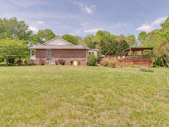 Situated 2 miles from the Natchez Trace Pkwy, this immaculate brick home is tucked away on 7 Acres offering a peaceful and quiet environment, surrounded with wildlife. Features a beautiful in ground pool with custom built deck for entertaining! Open floorplan features stainless steel appliances, quartz countertops, and hardwood floors. Also features a large sunroom, an incredible garden area with greenhouse, blueberry patch, and playground equipment with a zipline for the kids!