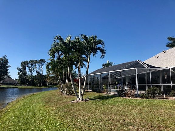 Located on ONE OF THE VERY BEST LOTS in Kings Lake, end of cul de sac, privacy on each side and across lake. Soaring ceilings, windows and sliding glass doors galore- all with storm protection! EXPANSIVE lanai -covered and uncovered with AMAZING LAKE VIEWS. HIGH END stainless appliances, granite countertops, stone backsplash and built in hutch cabinetry. VERY CLEAN AND MAINTAINED! There is both formal and informal dining inside, bar style seating in kitchen, and outdoor dining areas with tiled buffet and sink. Flooring includes durable wood laminate in living areas, and carpet/tile in bedrooms. Custom mosaic tile in entryway and 2nd bedroom. Windows are adorned with plantation shutters and decorative window treatments. Storm/security protection includes accordion/electric shutters and double bolt garage door. Low HOA fees $350 annually, multiple lakes and walk and bike paths. Shopping and dining are just right around the corner, and Naples beautiful beaches and trendy 5th Ave S, a short drive away.