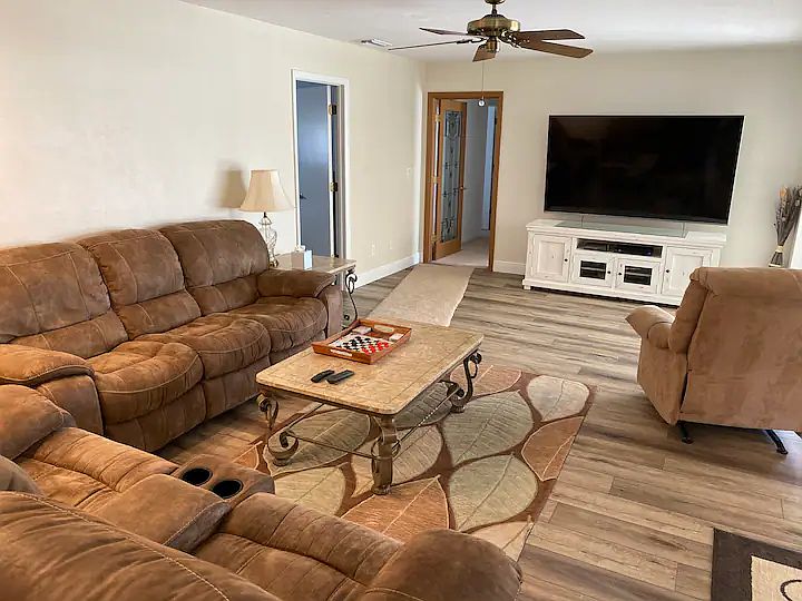 Long term rental available 4/1/2025. Relax by a beautiful canal front pool, enjoy the beautiful beaches, or watch your favorite sports on a huge TV. Rent the 22' pontoon boat and enjoy a dolphin sunset cruise. This open concept home is every boater's & fisherman's dream just minutes to the Caloosahatchee River. Featuring 4 bedroom 2.5 bath, this home has a spacious kitchen, large living room with 82" tv, & dining area with 10 person table for family meals. The house features a beautiful pool & lanai area with gorgeous views of the water. Centrally located to many restaurants, shopping & entertainment. Renter pays all utilities. Last months rent due at signing. No smoking allowed. Pets allowed, but must sign damage agreement. Renter maintains lawn and pool.