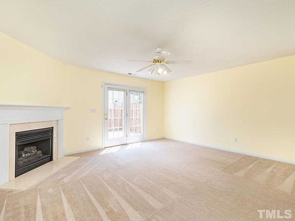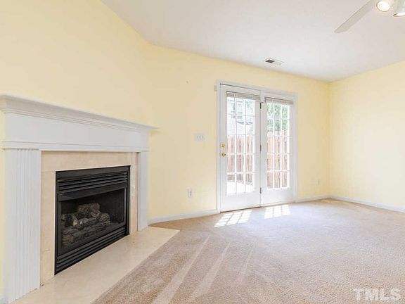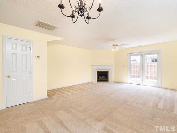 MOVE IN READY!! 2 bed 2.5 bath end unit townhome in Hedingham! Bright open floor plan, corner fireplace, lots of cabinets and pantry in kitchen. BARN DOOR in main bedroom. Both bedrooms have private bath. Privacy fenced patio/deck. New dishwasher and garbage disposal 2019, new water heater 2017. Minutes from 540,440, shopping, etc. Two community pools, golf, walking trails, play areas - Hedingham has it all! Grab this one quick!