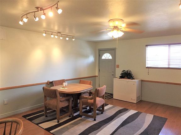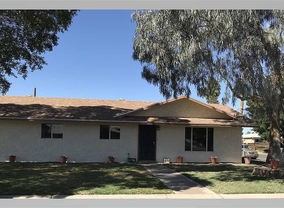 Great corner location in exceptional condition. Newer roof, newer a/c unit, remodeled kitchen w/appliances installed march of this year. Real wood flooring, dual pane windows and insulated garage has air conditioning. Swamp cooler will cool garage and entire house. Over-sized master bedroom has sitting area. Covered patio has tile and flagstone walkway. Double gate has removable middle pole for RV access. A definite must see!!