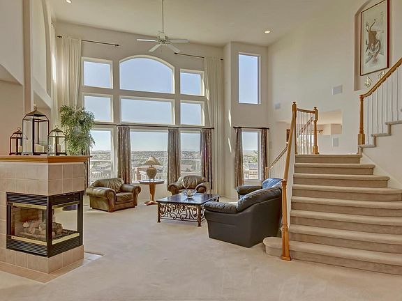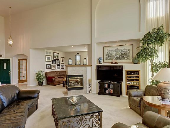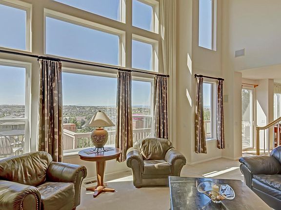 Quite possibly the BEST lot in the neighborhood. Situated on the fourth hole of Saddle Rock Golf Course, this home sides to a greenbelt and faces the saddle rock, namesake of the course and surrounding neighborhoods. Views stretch from east to west and include Pikes Peak and much of the front range. Pride of ownership is obvious as the original owners have meticulously maintained this lovely home. With an impressive dual staircase, the soaring two story family room windows take in all the scenery, adjacent to the spacious kitchen with abundant cabinet and counter space. Upstairs is the huge master suite w/5pc bath and walk-in closet, loft, 2 beds & 2 baths. The walk-out basement will be an entertaining hot spot with wet bar & theater area. Additional features: basement bed & bath, newer roof & gutters, newer ext. paint, some newer windows, mature landscaping, extended deck, .25 acre lot, fenced yard. Close to Southlands Mall, DTC, DIA, e-470. WOW!