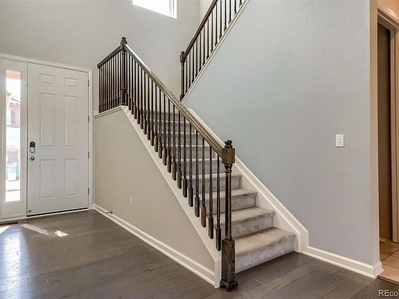 Splendid Richmond home in sought-after Saddle Rock. Light, bright, open & sunny two story home with partially finished basement. Soaring vaults & 9' ceilings with thoughtful architectural details. Spacious two-story entry greets you as you enter the home. Impressive main-floor executive study w/built-ins. Expansive gourmet kitchen offers granite counters, a huge island with ample seating, stainless appliances, double ovens, pantry + delightful Butler's nook. The great room features a cozy gas fireplace with mantle. and plenty of windows to brighten up your living area and your day! Upstairs you will find the luxurious primary retreat which again offers ample lights from multiple windows. The 5 piece en-suite bath w/separate vanities and generously-sized walk-in closets will offer a spa like environment. Pass through the loft on the upper floor to find the 3 additional bedrooms. Two of which share a Jack-n-Jill bathroom and the third has it's own bathroom. Downstairs you will find the finished family room which is extra large with room for plenty of activities. The north wall is plumbed for a future wet bar and the work-out room is equipped with bathroom stubs for a future bedroom/bathroom combo; if needed. This beautiful corner lot is already landscaped with sprinklers in front and back of the home. Steps from SaddleRock Golf Course and close to the incredible Trails Recreation Center & the Cherry Creek State Park & Reservoir – and Dog Park. Excellent Cherry Creek schools and easy access to E-470. ONE OWNER ONLY!