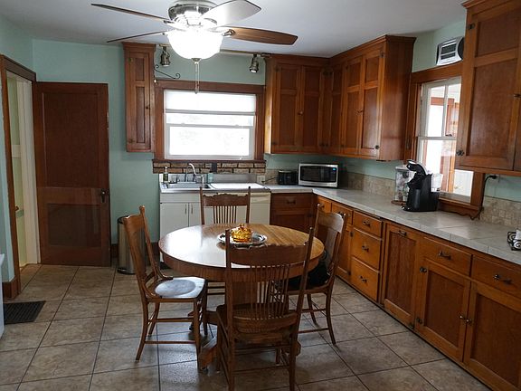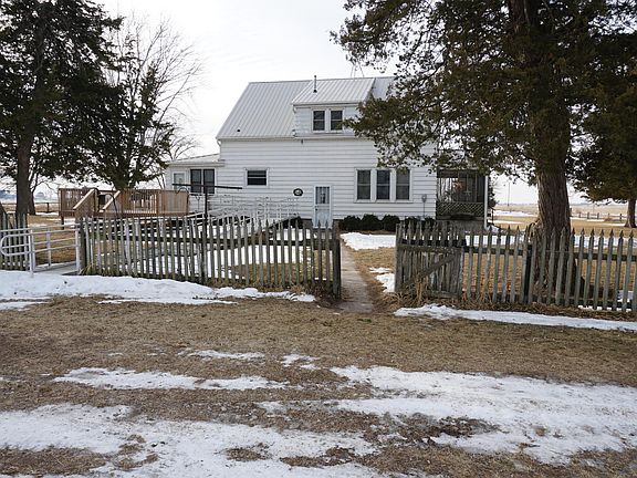 Well-loved and cared for acreage on 5 Acres M/L to be surveyed by closing. Furnace, central air and septic 6-7 years old. Steel roof and aluminum siding. Updated windows. Remodeled bath plus half bath on upper level. Appliances stay but not warranted include washer, dryer, refrigerator, stove, dishwasher, garbage disposal, freezer and water softener. Large eat-in kitchen. 1st floor laundry in sunny finished porch that could be den or office measuring 19 X 10. Outbuildings include machine shed with cement floor and automatic door opener, corn crib, bins and detached garage with heater and window a/c. Additional parking in outbuildings. Enjoy the large deck plus screened porch. Property is an estate to be sold as is. Surrounding land has a deed restriction of no hog confinements.