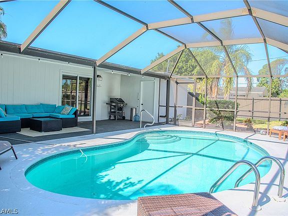 Charming pool home in the Villas. Modern bright open floor plan that has been fully remodeled. 3bedroom, 2 bath open concept floor plan with modern contemporary kitchen complete with granite countertops and backsplash, new stainless steel appliances , bar seating in the dining room overlooking the pool. Hugh lanai with plenty of covered space and open sundeck. Pool has been completely resurfaced in 2022. New epoxy flooring in the garage and bonus room. Circle driveway and large privacy fenced yard with storage shed is ideal for children and pets. Conveniently located near an impressive variety of restaurants, shopping, airport, beach and Minnesota Twins / Red Socks spring training facilities.