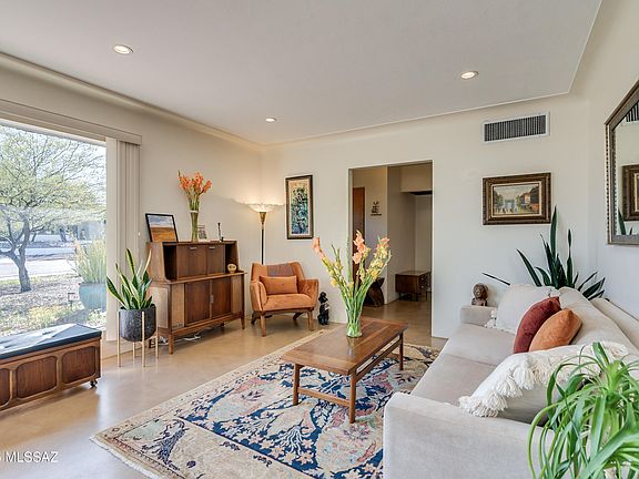 Immerse yourself in mid-century charm in this lovingly upgraded large 2-bedroom 2.5-bathroom home in the historic Sam Hughes neighborhood. The spacious rooms have beautiful concrete overlay and new hardwood flooring. Newly renovated primary suite with walk in closet, soaking tub and dual vanities. Guest bathrooms have been tastefully renovated. The kitchen features stainless appliances and authentic mid-century cabinetry. Every room in this house is spacious, light and livable. This home is ideal for those seeking a balance of history and modern convenience. The neighborhood is walking distance to UofA, pubs, restaurants and shops. Don't miss your chance to experience the charm and comfort of this historic gem.