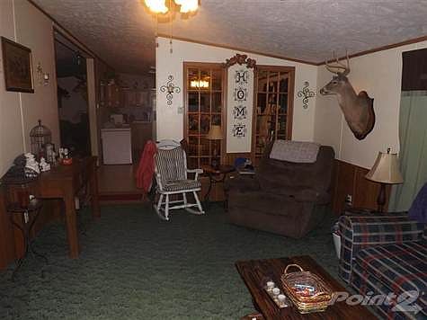 Sit on your front porch and enjoy the evening sunsets. 2240 sq ft of living space. 4BR, 2BA manufactured home, family room w/ fireplace, lg eat in kitchen w/ lots of cabinet space. 38x48 shop w/ concrete floor and 1/2 bath. All on 11+/- acres.