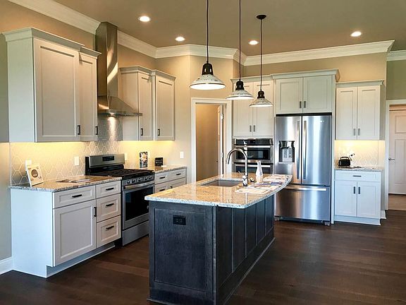 Amazing new home built by Graybill Custom Builders in Clay Ridge Estates. Built with the highest quality in design and amenities, you will fall in love with this home. It features a spacious open split bedroom floor plan with 10 and 9 ft ceilings. Features include plank hardwood flooring throughout the living, dining, kitchen, and master bedroom areas. For the master chef, the kitchen features white cabinets with granite counters, stainless steel appliances, large pantry, and a range hood vented to the outside. Enjoy the Large 15 ft. by 14 ft. covered porch overlooking the back yard. There is an inviting front porch, fireplace, tiled master bedroom shower, and built-in lockers inside the garage entry. Other features include a patio and much more! The finished lower level features a rec room, media room & bedroom (or 2 bedrooms), bath, and storage. Home sits on nice corner lot next to neighborhood park.