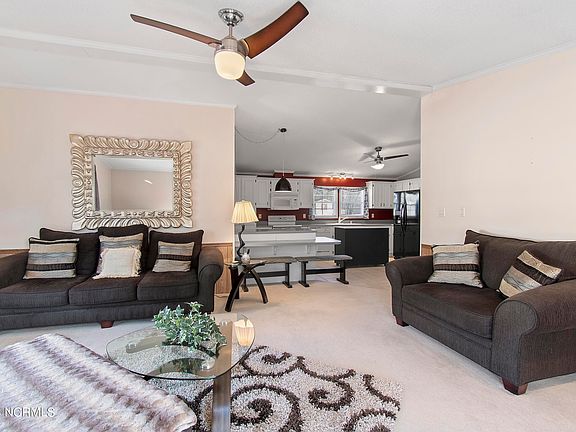 Great opportunity to own this 3BR 2BA 2072sf Doublewide in Forest Hills just minutes from Holden Beach. Spacious corner lot on .41/acre. Large den with gas fireplace plus living room and separate dining room. Kitchen has movable island and stationary table-level bar. Master bedroom has extra sitting area, walk-in shower, tub and walk-in closet. Washer, dryer and refrigerator convey. Metal roof is approximately 7 years old. Refrigerator added in 2022. Take advantage of the wrap-around porch to enjoy outdoor living with family and friends. Storage building is 8x10 with double doors; floor needs work.