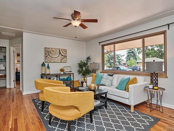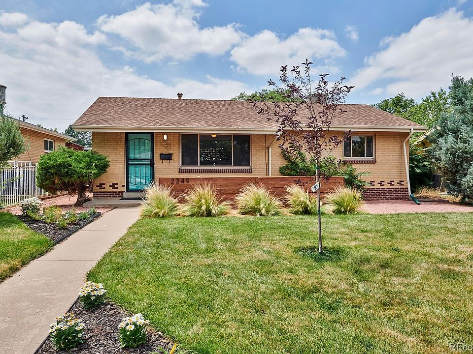 This original mid-century brick home has been thoughtfully renovated to create a home that's both stylish and functional. The crisp white kitchen offers loads of counter space and storage; the updated tile floor and backsplash are trendy and durable. Pull up a counter stool and enjoy a quick bite at the breakfast bar, or invite friends to perch there while you whip up a meal. The refinished original red oak floors provide a classic backdrop for future design choices. The three bedrooms down the hall are generously sized, and have natural light and good storage opportunities. With all new paint and flooring, the lower level is a great place to relax. Imagine hosting movie nights in the large family room - or use this extra space to dive into your hobbies. The 4th bedroom, complete with an egress window, is an ideal "away space" for household members or guests. Soak up Colorado's 300+ days of sunshine in the 7000 sq ft lot. In front, the privacy screen and crushed stone sitting area lend a semi-private shady spot to unwind and feel connected to the neighborhood. Out back, grow veggies or flowers in the raised beds and kick back to enjoy the fruits of your labor under the covered patio year 'round. The wifi-enabled sprinkler system makes maintaining the lawn easy! Located 1/2 block from the Moorhead Park and Rec Center, you'll be able to stay fit and active. Easily walk, bike, or drive to new economic hubs of the Montview Corridor, Stanley MarketPlace and the Eastbridge Town Center, where you'lll find a wide assortment of restaurants, shops, and services to enhance your urban experience. Down the street from new public character school-DSST Aurora
