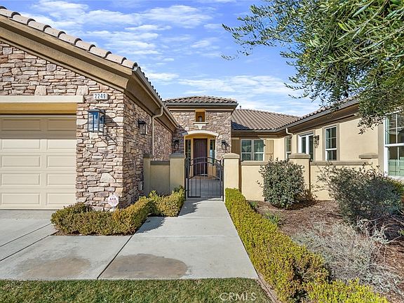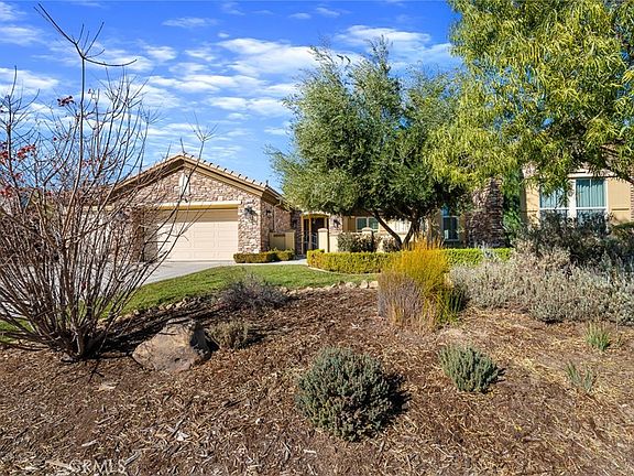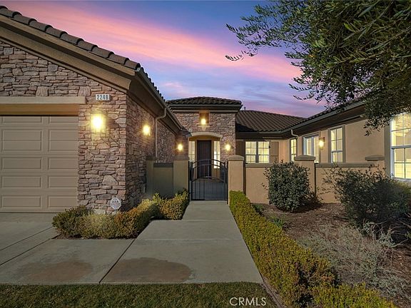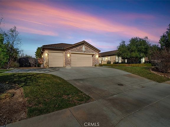 SWEEPING PANORAMIC VIEWS will capture your heart!! If you seek views, privacy, beautiful architecture with a perfectly designed floor plan, this home is a must-see! This single-story beauty is situated on a cul de sac in the sought-after enclave of Crystal Ridge in the Reche Canyon area. Situated on a 1/2 acre lot, the property boasts more than 3500 sq ft of polished living spaces with extraordinary outdoor spaces as well. A welcoming entry courtyard will greet you as you step into this gracious home. The living spaces are versatile and generously sized. Every room enjoys high ceilings, & is welcoming, bright, and airy. The gourmet kitchen is nicely appointed with stainless steel appliances, beautiful granite, and thoughtful features including a prep sink on the island, double ovens, built-in microwave and a large walk-in pantry. There are plenty of dining options for the family or when entertaining a crowd. Additionally, a powder room is located off the living areas for your guests. Across the house, a gracious, tranquil primary suite awaits. It boasts private access to the rear yard, windows to those amazing views, as well as ample closet space (two walk-in closets!) and a spa-like bathroom with a luxurious soaking tub, luscious shower, and dual vanities. Three additional guest rooms and two additional guest baths complete the bedroom wing. One guest room has its own private bath and would work as a second primary suite. The 8-ft doors and windows beckon you to step outside to relax on the custom patio or take a dip in the beautiful pool. Relaxing in the spa and watching the city lights come up in the evening will surely become a favorite passtime. Other special features include: Laundry room with sink and cabinetry, efficient dual HVAC systems, PAID FOR FULLY-OWNED SOLAR, ELECTRIC VEHICLE CHARGER, 3-Car Garage. What more could you ask for! Don't delay.