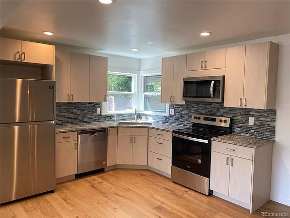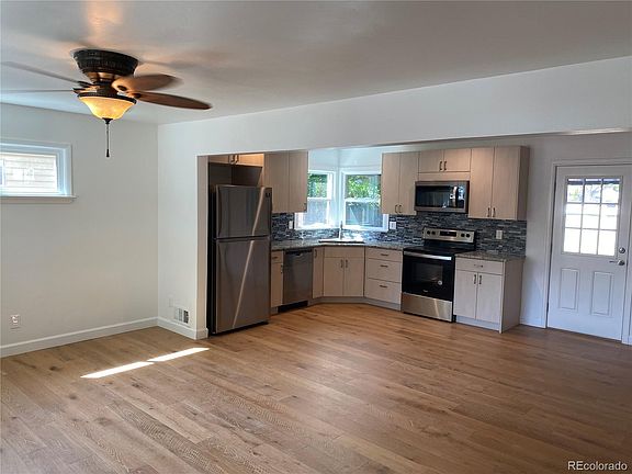 From the moment you walk in you will notice a gorgeous kitchen that overlooks the living and dining area. Right off the dining room is a large covered patio perfect for entertaining. There are gorgeous 7" wire-brushed hardwood floors throughout the main floor. Main floors offer 3 bedrooms and 1 complete remodeled bathroom with a large walk-in shower, custom tile work, double vanity, and granite counter. As you make your way downstairs, you have a nonconforming bedroom or another family room, a full bath that is totally remodeled. Large back yard. Walking distance to Stanley Market, East Bridge town center. Minutes to Fitzsimons and light rail, easy access to 225 and I-70.