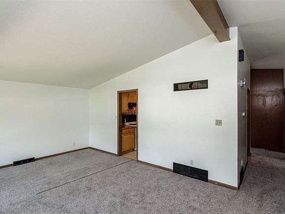 If a garage is important to you, this place is a must see! The newer oversized two stall garage is 30x25, with 750 square feet, and extra tall doors. The inside has an electrical panel, lots of outlets, storage and is completely drywalled with a steel roof. On the inside of this charming mid-century modern home you will find fresh paint, new carpet and a cool roof line. The A/C is approximately one year old, new furnace and the Orangeburg has been replaced.