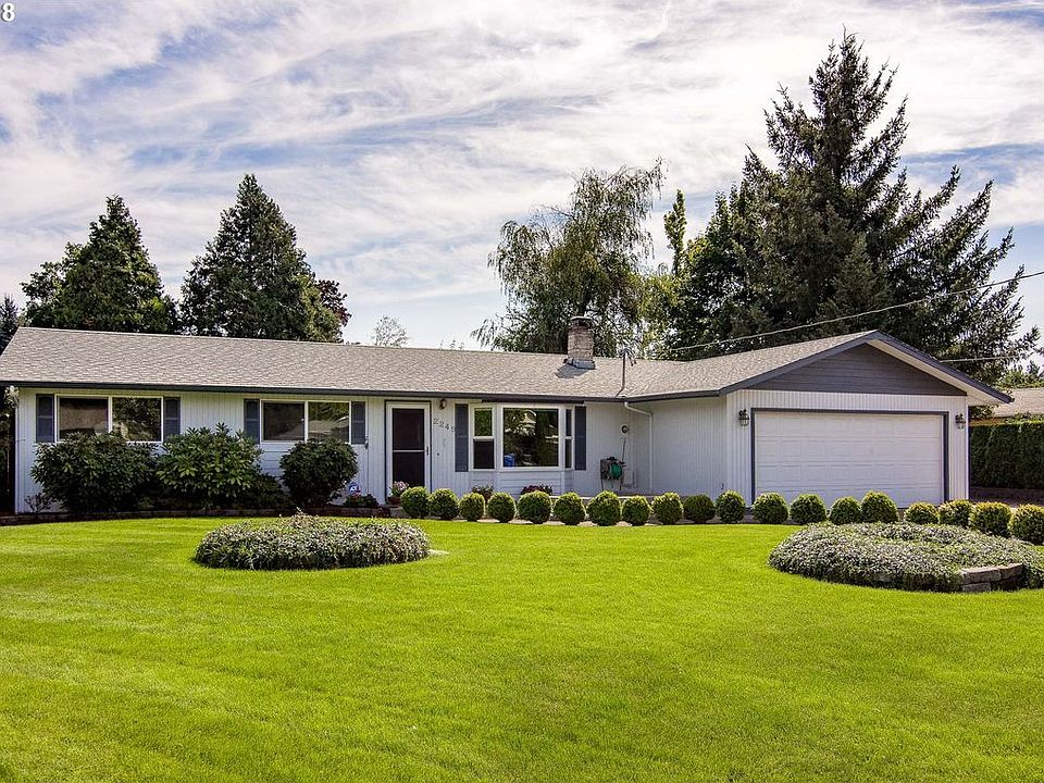 Gardener's Delight! Beautiful well-maintained single level home on just under half an acre! This updated home offers great separation of space w/living room & family room. Private yard offers two water features, delightful mix of trees & open sunny spaces. Huge cedar deck w/hot tub, covered patio w/propane fire pit, raised beds & so much more. Large detached shop w/power & RV plug-in.