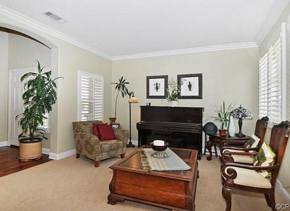 This elegant home is located on a cul-de-sac in the Wonderful Community of SERRANO HEIGHTS . Move-in condition. Warm & inviting open floor plan with high ceilings features 5 Bedrooms, 3 Baths & 3 car garage. One bedroom and full bath downstairs. Gourmet kitchen with Granite counter tops boasts a large center island, dual ovens, gas cook top, microwave, spacious breakfast nook , walk in pantry and lots of cabinets, Stainless appliances. Crown Molding and 5" baseboards,recessed lighting, wood shutters. Next to the kitchen is a large family room with inviting fireplace. Beautiful wood flooring in entrance,family room and kitchen area. Large upstairs Master Suite with double door grand entry and walk in closet. Separate Laundry Room Located Upstairs Comes Complete w/ Extra Cabinet Space. Great curb appeal. Walking distance to Serrano Park, close to hiking trails and conveniently located near the 55 and 91 freeways. This is a must see property!