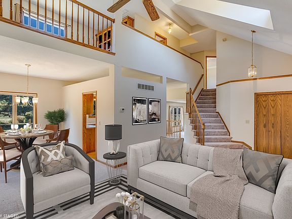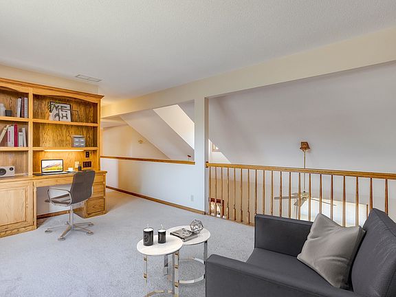 If you are sick of cookie cutter floor plans, this is the home for you! As soon as you open the door, you'll see an impressive staircase that will look awesome decorated for the holidays and an open formal living room and dining room off to the left. Directly off the formal dining you'll see the kitchen with stainless steel appliances, a second eating space and the main floor family room with beautiful fireplace and built-ins. Around the corner from the family room is a half bath, the door to the garage and the door to the basement. The basement features a 3rd living space, finished bedroom, storage, mechanicals and a roughed in bathroom. The second story is the show stopper! Overlooking the formal living and dining space is a loft office space with built in desk and bookshelf, the spacious main bedroom with massive walk-in closet, 2 additional bedrooms with water views out the front windows and the laundry area is conveniently located on this floor as well. Add some personal touches to this home and make it your own!