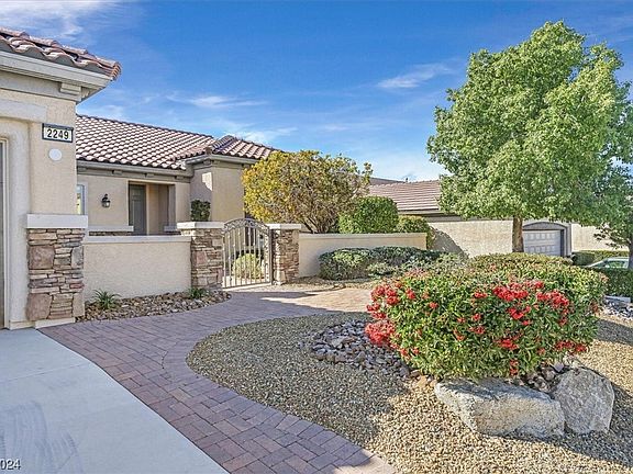 Welcome to your dream home in the Sun City Anthem community! This elegant residence sits on an elevated lot and boasts 2 bedrooms, 2 baths, and a versatile den, providing ample space for comfortable living and entertaining. As you enter through the charming paver patio courtyard, you'll immediately appreciate the tranquil atmosphere and inviting ambiance.
