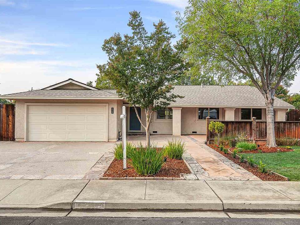 Sensational single story beautifully updated inside and out. Open floor plan with vaulted ceilings, a chef's kitchen overlooking the family room, white cabinets and stainless steel appliances. Reimagined bathrooms with new white vanities, quartz counters, tile showers and upgraded plumbing and electrical fixtures. A flat, private and great entertaining backyard with a large patio and plenty of room to play. There's even a single car detached garage with easy access through the swinging gate and down the side yard. Perfect for all your toys with a great amount of storage. Recently installed 40-year composition shingle roof and HVAC system. Close to Sunset elementary, Mendenhall middle and Granada HS. Quick access to Silicon Valley and close to several wineries and Ruby Hill country club.