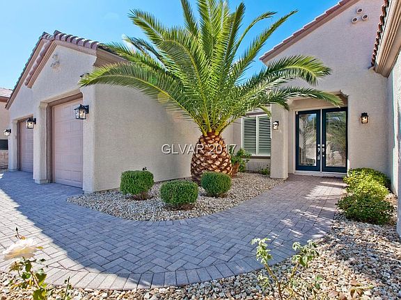 Sun City Anthem Showstopper! The curb appeal alone says it all, custom front doors leading into this incredible home. This single story has an open floor plan concept, 2 beds with a den. 2nd bedroom has it's own bath. Shutters throughout the home, also with surround sound. Wet bar next to the living room. Amazing kitchen with a pull up breakfast bar & fully wrapped island with custom cabinets w/ rollout shelfs. Marvelous strip & mountain views!