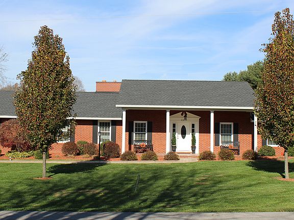 Beautiful brick ranch home in quiet subdivision 7 minutes from Scottsburg. This home features 4 bedrooms, 4 bathrooms and an additional office/craft room. The kitchen and dining room area is an open concept design with a gas fireplace. The kitchen has a 9ft. island and custom hardwood cabinetry with quartz countertops. There is a 21ft X 24ft family room/living room with 12ft vaulted ceilings, custom shelving, windows and new French doors that lead to an arched patio with fire pit and hot tub. A finished partial basement can be accessed from the family room. The dining room, kitchen, large utility/laundry room and all bathrooms feature ceramic tile flooring. The house also has double pane windows, new seamless guttering with gutter guard, high efficiency heat pump HVAC system and a tankless hot water heater. There is also a two car attached garage and an additional unattached 12ft X 24ft brick garage on the property. The outdoor area of this home includes 2 large patios for entertaining guests. The home is beautifully landscaped with attractive walkways.