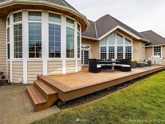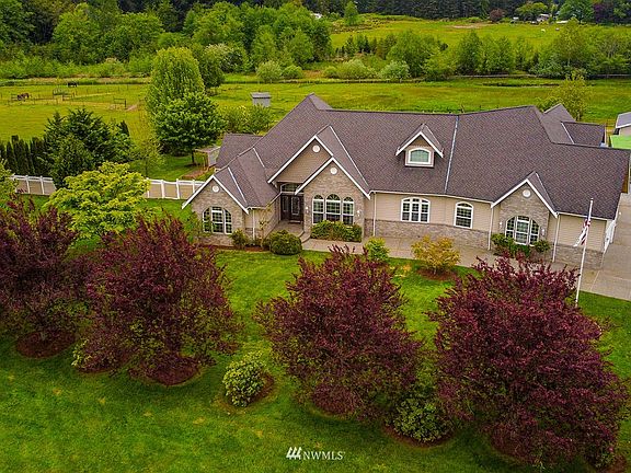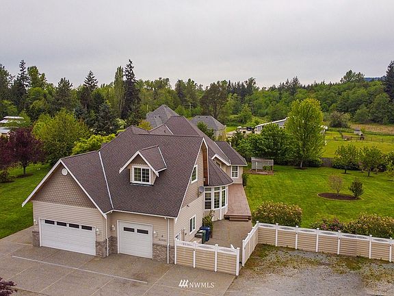 Classic Country Elegance! This expansive 3150 sqr, 3 bed, 3 bath RAMBLER is situated on 5 level acres in beautiful Conway, WA. 3.5 car garage w/ 1/2 bath and bonus rm, LARGE shop for hobbies, work equipment, vehicles and a paddock area for a your animals. Covered parking for 8 vehicles. Home interior features: Hardwood and tile floors, cathedral ceilings that will take your breath away and a Chefs Kitchen. Custom soft close cabinets, huge island with granite counters, pull out shelves, Viking 6 burner gas range and wine frig. Formal & informal dining rms, living room w/ a wall of windows & a very cool media/bonus room both w/gas frplc. Primary bathroom: double sinks, tile walk-in shower & tub. Seller is motivated. Let's get creative!