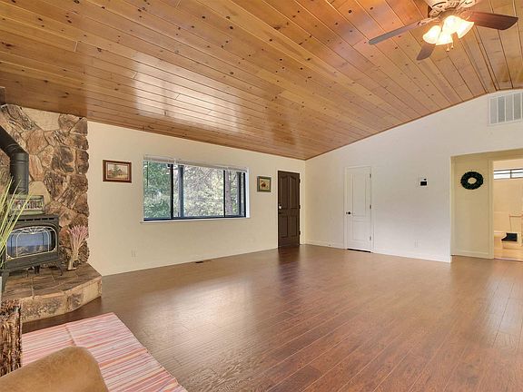 Open House - Saturday, May 21st from 12:00pm - 2:00pm and Sunday, May 22nd from 12:00 pm - 2:00pm. Value Priced with Xfinity Internet and Large RV Parking! Remodeled and move in ready, this one level, 3 bedroom, 2 bath with a large 2 car garage on .32 of an acre with central air conditioning is a must see. The super sized living room with a knotty pine vaulted ceiling and a cozy propene free standing heat stove is an open concept to the lovely country kitchen. There is a dining area and sliding glass door that leads to the fenced yard with patios and a awesome pet enclosure. Fenced back yards can make move in a lot easier to arrive and have a safe place for your pals. The kitchen is fully equipped with solid quartz countertops and has a long eating bar for buffet style serving or rolling out weekend pie crusts. The deep kitchen stainless steel sink and window above look out to the patio for keeping an eye on little ones. The common hall bath that divides the 2 fresh guest bedrooms has tile flooring, a solid vanity counter top and a window above the tub/shower combo for extra venting. The separate and private master suite is extra large with a French style glass door to the patio, easy slide duel closets and the master bath has a very nicely done tile shower and a unique vanity top. The laundry room is inside and just as you step in from the garage for dropping off your work boots. You will love the simplicity of design and modest footprint for easy care mountain full time or vacation living. Nestled within the Upper Crystal Falls Ranch in the meadow above Crystal Falls with an association that is huge on amenities and small in fees of approx. $108.00 per quarter. Included are: the community lake, tennis courts, stables with possible boarding, community garden, play and picnic area, ball field, re-servable clubhouse, trails and barn events. Just about 2.5 hours from most Bay Area Locations. Splash in Crystal Falls Lake and Pinecrest Lake, in the summer months and winter at Dodge Ridge Ski Resort, just minutes away. Close to Twain Harte proper that offers a Post Office, Tennis and Pickle Ball Courts, Ice Cream and Mini Golf, the Community Park with a concert stage, the Golf Course with Disk Golf, and local Restaurants, Shops and Pharmacy. Just minutes to Yosemite National Park, Pinecrest Lake Resort, New Melones Reservoir, Don Pedro Lake, Columbia Airport and State Park, Black Oak Casino with a music venue, Murphys Wine Country, Railtown 1897 State Park in Jamestown and Sonora Regional Medical Center. Seller is joyfully willing to remove the outside dog and in the garage cat enclosure upon request.