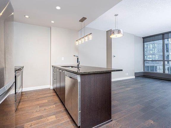 Welcome to your new one-bedroom condo in Keynote II. Located in Victoria Park this area provides everything within walking distance. Sunterra Market is directly below the building and Superstore steps away in East Village. The Stampede grounds, BMO Centre, and Cowboys Casino are also just a block away across Mcleod Trail. The closest LRT station is also just a couple blocks. Conveniently central to accommodate all downtown living needs. The unit features dark contemporary cabinetry, stainless steel appliances and black granite countertops. A 4-peice bathroom and in suite laundry. This unit is perfect for a professional individual or couple. Heat and water included Credit Check Required Rates based on a minimum 12-month term
