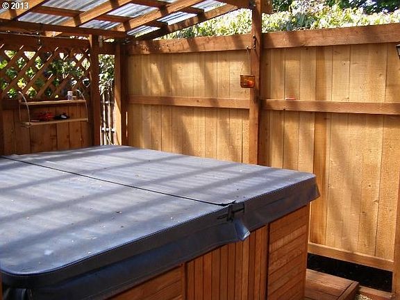 Must See! Vintage home with coved ceilings, hardwood, and sky light in master bedroom with slider that leads to private backyard. Home has an abundance of storage and additional storage in loft in detached garage. Private backyard sanctuary with gazebo with hot tub, cobble stone court yard, path ways leading to countless shrubs, flowers, and nice sized lawn.