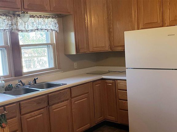 New listing! This large family home (4 bedrooms and 2 baths) has space for your family and friends! First, step into the large wrap-around enclosed front porch, just right for enjoying these fall days. Come on into the spacious dining room and living room, the kitchen, main floor bedroom and bath, and enclosed back porch (also used for main floor laundry.) The kitchen has updated oak cabinets and the appliances may be negotiable. The stacking washer and dryer set may be negotiable, as well. The vinyl siding is so well done and partially fenced back yard is perfect for kids and pets. There is a large shed and detached garage, as well as the car port on the front of the house. This home is being sold "as is."