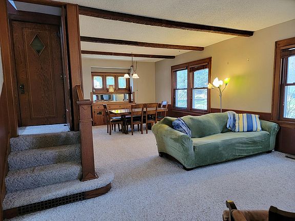 Inviting Craftsman style home. with the authentic charming features, such as leaded glass, stained-glass built-in hutch, beautiful woodwork, French doors, & an inviting front porch. Updated windows let the natural light flow through the space with a fun kitchen. 3 bedrooms all on one level with a finished walk-up attic, and a partially finished basement. The detached 2-car garage complements the property, while a delightful deck and beautifully landscaped yard with raised garden beds offers a fun and relaxing outdoor experience. This property offers a perfect blend of historical integrity and modern conveniences to complement your lifestyle. Embrace the small-town charm with recreational activities, shopping, community parks, trails for walking or biking wind through the area offering a serene escape. Golf enthusiasts will appreciate the nearby golf courses, while trout fishing & rivers provide opportunities for an extra layer of enjoyment to your lifestyle. + 1 Year Home Warranty