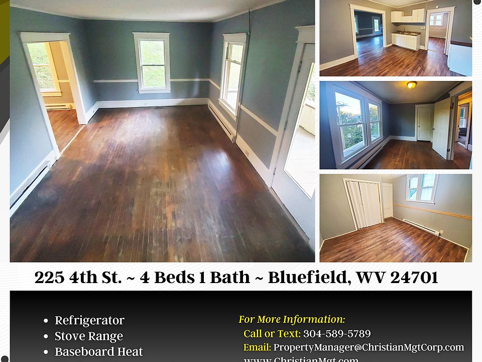 225 4th St ~ 4 Beds 1 Bath ~ Bluefield, WV 24701