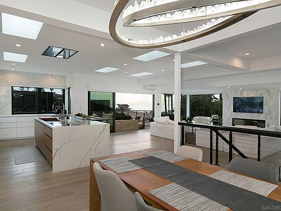 A Modern and custom home in the best of locations! Across the street from the main entrance to Moonlight Beach with no steps to climb. Three short blocks for all the 101 has to offer. Beach and ocean views from many rooms of the house including the first floor family room which opens to a resort like yard with state of the art spa, two waterfalls and a custom fountain. The second floor (only a few steps up from the front gate) has a glorious and bright great room with beach and ocean views as well as a convenient patio. 6 bedrooms, an office and 4.5 baths provides ample spaces for everyone! Equipment: Garage Door Opener, Range/Oven Sewer: Sewer Connected, Public Sewer Topography: GSL