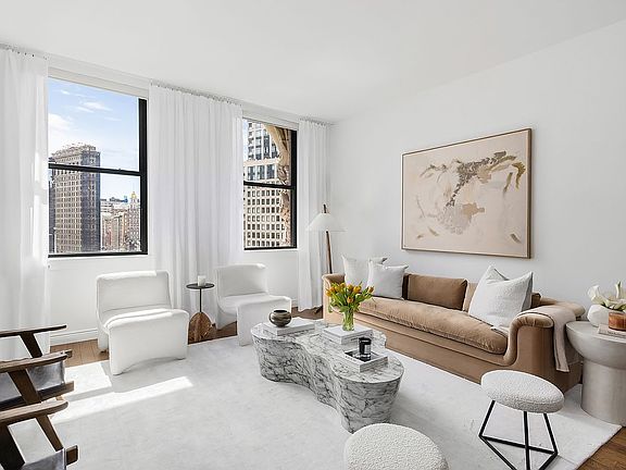 Welcome home to residence 10K at The Grand Madison. This exquisite collector property has one of the best views available on Madison Square Park, perfectly showcasing the treetops and an iconic Flatiron skyline. Expansive and elegant, you will want to make this jewel atop the park your own. Watch the changing landscape through the seasons: fall, winter, spring and summer all have their brilliance. The park pours into the apartment at this vantage point and creates a restful and one-of-a-kind atmosphere. For these reasons, this home is one of the most desired apartments in the building and one of only a handful of two bedrooms facing the park. The stunning 2 bedroom, 2 bathroom loft is incredibly luxurious. Upon entering, you are welcomed into a gracious entrance gallery, 10ft ceilings, and a Poggenpohl open chef's kitchen with top-of-the-line appliances include Viking, SubZero and Bosch. The split bedroom spacious floor plan is ideal for comfortable living. The private master suite has spectacular park views, 25 feet of custom closets, and a huge marble bathroom. The generously sized second bedroom has a full marble bathroom conveniently located adjacent to the room. The apartment also comes with a large on-floor storage room for added luxury and convenience. The Grand Madison prides itself on providing the highest level of service. A notable turn-of-the-century neighborhood landmark built in 1906 in the Renaissance-revival style by Francis H. Kimball and Harry E. Donnell. Amenities include a fitness room, a 24-hour doorman, concierge, in-house dry cleaner and tailor, daily housekeeping service, and 2 handymen. Flatiron, one of downtown NYC's most iconic neighborhoods with its beautiful Madison Square Park, is right outside your door. Opportunities for 5th Avenue shopping and fine dining abound, with Eataly, the Edition Hotel's Clocktower, the newly inspired vegan Eleven Madison Park, and the original Shake Shack across the street, along with Scarpetta, ABC Kitchen, ABC V, Upland, and Gramercy Tavern all within blocks. Pet-friendly and convenient to subways, Grand Central, and Penn Station, 225 Fifth Avenue is truly a brilliant place to live and enjoy the best of what this city has to offer.