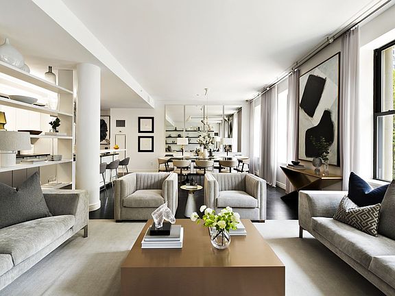 Stunning Designer 3 Bedroom Facing Madison Park The most sought after and largest three bedroom line available in the building now ready for private showings. Shows beautifully and will impress all! 10 foot plus vaulted ceilings, oversized windows, gorgeous hardwood floors, tremendous light and an overall feeling of luxury. This masterfully designed home is a must see! This home features a Crestron System for A/V, HVAC and lighting, with top of the line 5 zone Bowers & Wilkens speakers, smart home system, additional lighting, extensive wiring for phone and data, and custom closets. Enjoy entertaining guests and family with the upgraded open chef's kitchen built with custom millwork, breakfast bar and equipped with top-of-the-line Wolf, Viking and Bosch appliances. The expansive master suite is complete with an en-suite limestone bath with an oversized spa shower with double vanity and a custom walk-in-closet. The second and third bedrooms both offer luxurious comforts and views into the buildings gardens. One of these bedrooms was converted into a library/media room and designed with a top-of-the-line sound system ideal for enjoying movies and music and is perfect place to unwind. Residence 3L comes with a rare on-floor storage room measuring approximately 10x7. The Grand Madison is one of the New York's great Beaux-Arts residential enclaves on Fifth Avenue and is centrally located in the heart of Manhattan. Originally built in 1906 as the Brunswick Building, later known as the New York Gift Building, a showcase for glass, ceramic and silver giftware, then graciously reimagined as The Grand Madison Condominiums in 2005. Today, the full-service, pet-friendly building boasts a magnificent Murano chandelier lobby and a long list of white-glove amenities, including 24-hour doorman, concierge and valet services, dry cleaning, shoe shine, maid service, window cleaning, tailoring, a private fitness center, and full time superintendent. This sought-after Manhattan destination delights with many fine dining opportunities including Eleven Madison Park, Gramercy Tavern, The Nomad, ABC Kitchen, as well Mario Batalis Eataly Food Emporium, The Clocktower at Ian Schrager's Edition Hotel, April Blomfield's The Breslin Bar & Dining Room, The John Dory Oyster Bar, and Danny Meyers original Shake Shack in Madison Square Park all just outside your door. Nearby N/R/W, 6, and F/M trains provide easy transportation to all of the city.