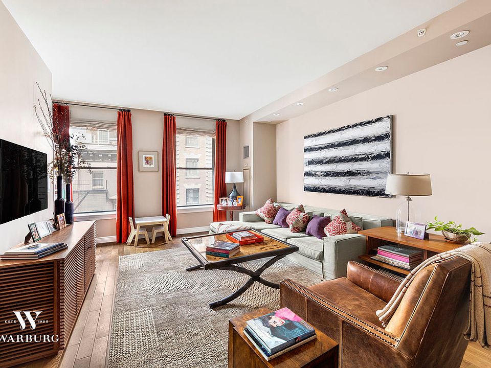 With soaring ceilings, oversized proportions and tasteful upgrades made by the current owner, Residence 4B is the perfect home for all your needs. The entrance foyer boasts grand oak plank floors and leads to an expansive and open living/dining area. The chef's kitchen features Viking appliances, a new refrigerator, a chic bar, and re-stained white cabinetry to brighten the space. Anchoring the open living/dining area is the vibrant and elegant master bedroom, featuring custom built California Closets including drawers, cabinets and shoe shelving for efficient storage. The en-suite Carrara marble master bathroom is completed by a deep soaking tub, separate shower stall and double sinks. The home office is currently set up as a second bedroom enclosed by pocket doors off the entrance hallway. A utility closet adjacent to the kitchen houses a new in-unit washer/dryer and excess storage space. The Grand Madison Condominium is an established and well-run condominium, which offers a full-time doorman and concierge, fitness center, live-in superintendent and in-house valet includes dry-cleaning, laundry, tailoring and cleaning services. Located in NoMad and Flatiron, the building provides the ultimate in convenience to the best restaurants, shopping and transportation. Madison Square Park is directly across from the building and world class dining is nearby.