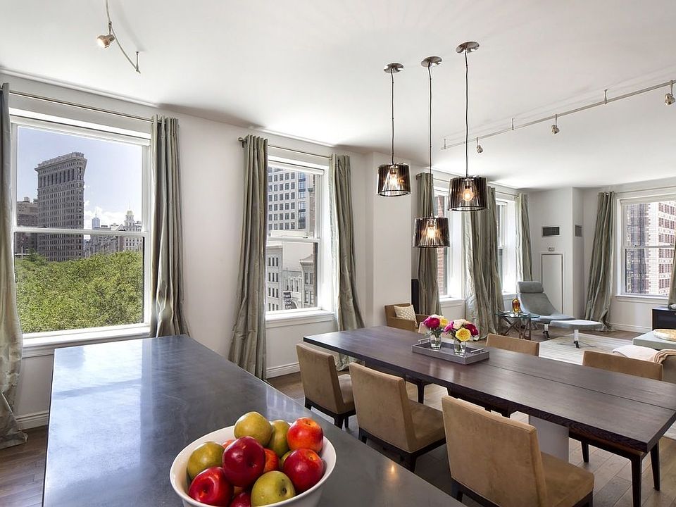CONTRACT SIGNED This is an extraordinary corner apartment at The Grand Madison, with almost 40ft overlooking Madison Square Park and bedrooms overlooking Fifth Avenue. There are stunning views of the Park , the famed Met Life Clock Tower , the landmarked Flatiron Building and down to 1 World Trade Center. The entry gallery is inviting and leads to the glamorous 37 Ft living/dining room with 10 Ft ceilings and oversized windows looking out at the Park below. There are plank oak floors throughout and central A/C. The open kitchen has top-of-the line appliances and a center island great for informal dining. The bedroom wing is separated by the gallery and all three bedrooms face Fifth Avenue. The master bedroom enjoys a beautiful marble bath en-suite with separate bath tub and shower. There is another marble bath and a guest bath. In addition there is a washer and dryer and an outside storage room on the same floor that comes with the apartment. The Grand Madison is a superb full service condominium, with full time doorman, concierge, fitness center, valet dry cleaning on site, and maid service available. The apartment is in move-in condition.