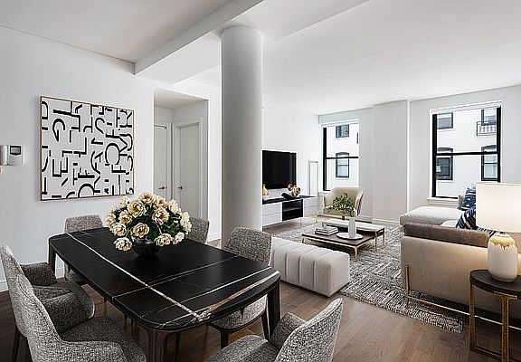 Apartment 6R's lofty open living space is as impressive as its location. Come home to this serene one bedroom, one and a half bath with soaring 10-foot ceilings and handsome oak hardwood floors. The home features a large open chef's kitchen complete with Viking appliances, Poggenpohl cabinetry, and stone countertops. The gracious master bedroom includes an extra-large dressing area. Beautifully appointed en-suite luxurious marble master bathroom with double vanity, separate shower and deep soaking tub compliment the classic prewar loft. The expansive apartment also features a beautiful marble powder room, large windows, Miele washer/dryer, and an abundance of closet space throughout. The Grand Madison prides itself on providing the highest level of service. The luxuries of this beautiful turn-of-the-century building include a newly renovated fitness room with Peloton and Mirror, 24-hour door attendant, concierge, in-house dry cleaner and tailor, daily housekeeping service, full-time resident manager, and two handymen. Downtown's hottest neighborhood and best park are right outside your door. Opportunities for fine dining abound, with Eataly, the Edition Hotel's Clocktower, Eleven Madison Park, and the original Shake Shack across the street, ABC Kitchen, Upland, and Gramercy Tavern all within blocks. Pet-friendly and convenient to subways, Grand Central, and Penn Station, the Grand Madison is truly a magnificent place to live and enjoy the best of what this city has to offer. Photos are virtually staged.