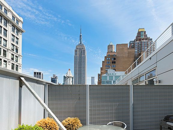 New to market with Private Outdoor Space! Enjoy a premium city living experience at downtown's most coveted pre-war building. This penthouse duplex 2 bedroom 2 bathroom features 1432 sq ft of indoor space and a 228 sq ft outdoor terrace. A welcoming entry foyer leads into an oversized dining and living room featuring soaring 11 ft ceilings and wide plank oak hardwood floors. Large oversized arched windows allows beautiful natural light to enter the apartment and one to enjoy 5th avenue sunsets. A chef's open kitchen has top of the line appliances featuring a Viking refrigerator, Bosch dishwasher, and Poggenphol cabinetry. A second spacious bedroom is tucked away with ample closet space with a full marble bathroom. The second level features an immaculate master bedroom with the convenience of a 2nd entrance from the penthouse floor. The stunning master bathroom is outfitted with a double vanity, stall shower, and a deep soaking tub. An outdoor terrace features views of the Empire State Building and beyond. The Grand Madison, located on Madison Square Park and Fifth Avenue is a full service white glove condominium. Amenities include a 24 hour doorman, fitness center, on-site dry cleaner, and gym. Central A/C, Washer/Dryer in unit. Pets ok.