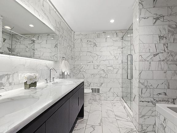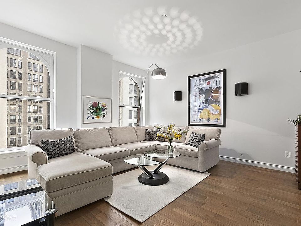 Luxurious Penthouse Living in downtown's most coveted prewar condominium! Enter into this elegant duplex 2 bedroom and 2 bathroom residence sprawling 1432 sqft indoors and 228 sqft outdoors, and immediately notice the warm welcoming foyer, soaring 11 ft ceilings, and stunning wide plank oak hardwood floors. Just ahead is a spacious living and dining room featuring a gorgeous wall of arched windows facing west that provides beautiful natural light and spectacular Fifth Avenue sunsets. Entertaining is made easy with an open gourmet chef's kitchen, appointed with the finest Poggenpohl cabinetry, Viking refrigerator and gas range, Bosch dishwasher, and ample counter space. Tucked away is a spacious bedroom with ample closets and a stunning marble bath that doubles as a powder room. The airy loft experience continues on the second level where awaits a beautifully proportioned Master bedroom, outdoor terrace that frames the Empire State Building, and a marble ensuite bath with double vanity, stall shower, and deep soaking tub. The Grand Madison is a landmarked white glove condominium offering full-time doorman, concierge, fitness center, live-in super and on-site dry cleaner.