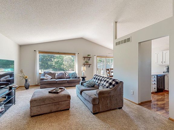 Well kept four bedroom walkout w/ two baths & oversized two-car garage located on a tranquil residential setting. Enjoy the expanded entry, vaulted ceilings, & grand natural light. Two upper bedrooms w/ full bath w/ pass thru to primary bed. Updated windows, 4 year old roof, & newer furnace & A/C. Multi-tiered deck, fully fenced back yard, paver patio, & extra-large storage shed w roll-up overhead door. Great energy benefit w/ solar collectors has reduced electrical bill & spring/fall months even see a payout to the owners. Freshly painted & new carpet in lower level beds. A great find!