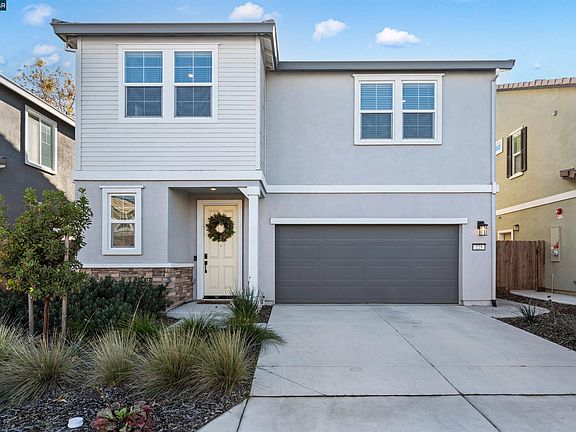 Welcome to this exquisite home in the gated community of Alicante. This newer construction home offers 4 beds, 2.5 baths, and 2,048 SF +/- of meticulously maintained living space offering a perfect blend of comfort and style. The interior features exceptional attention to detail, light and bright paint colors, recessed lighting, and luxurious LVP flooring throughout. The spacious kitchen/family/dining combo room is perfect for entertaining and well appointed with a kitchen island, bar seating, granite counters, a walk-in pantry, and gorgeous stainless appliances while the upstairs loft provides versatile space. Additionally, the sizable primary bedroom ensuite is a true retreat, complete with a walk-in closet and a beautifully appointed bathroom. The garage is wired for EV charging, catering to the needs of the modern homeowner. Outside, the community offers a park and playground, creating a welcoming environment. The location is ideal for outdoor enthusiasts, being very near the Delta's water activities, with downtown's conveniences and restaurants just a stone's throw away and easy access to Highway 160 and Highway 4. Don't miss the opportunity to make this exquisite home in Alicante yours!