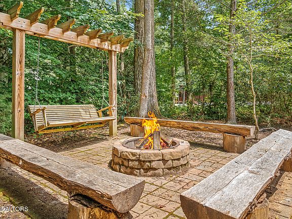 Step outside to experience the tranquility of the Smoky Mountains. Relax in the outdoor hot tub with forest views, or gather around the firepit to share stories and s'mores under the stars. Inside, the spacious living areas include a stacked stone fireplace, a fully equipped kitchen, and a large dining table that invites everyone to come together for meals and conversation.
