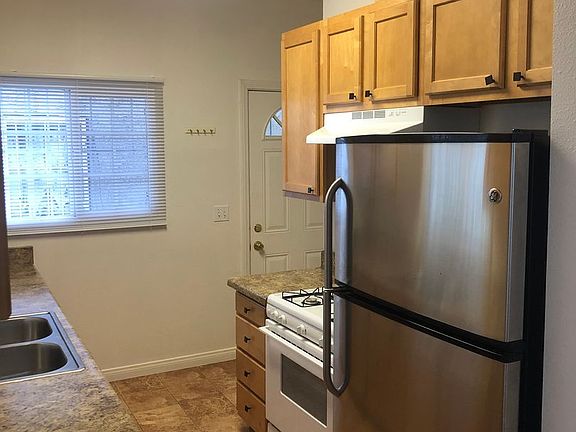 Ample counter spaceModern appliancesBeautiful hardwood-style floorsWarm wood cabinetry