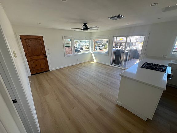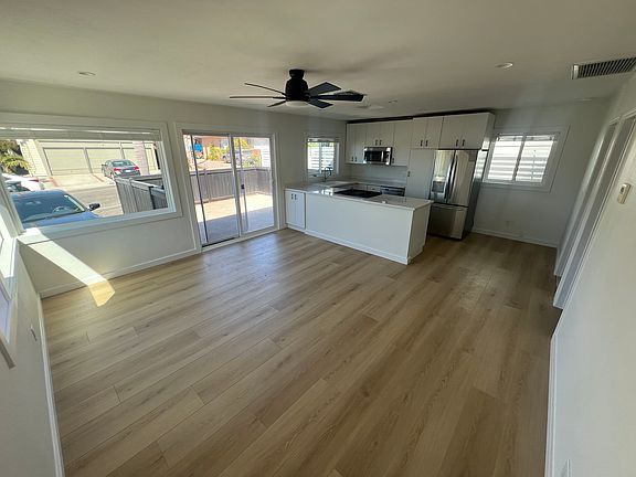 NEWLY RENOVATED one bedroom one bathroom front unit of a duplex walking distance from Del Mar and the Beach. This gem is optimally located in a safe neighborhood and uniquely features one (1) reserved parking space, a large private outdoor fenced in patio space with OCEAN VIEWS along with IN-UNIT LAUNDRY AND AIR CONDITIONING. FULLY REMODELED kitchen with copious storage including new cabinets, countertops, sink, and faucet. Kitchen features brand new STAINLESS STEEL APPLIANCES including refridgerator with water filtration system, gas oven range, dishwasher, and microwave. OPEN LIVING SPACE in large living room for entertainment along with picture frame windows and views toward the ocean. The LARGE BATHROOM space includes a brand new 48 inch vanity, updated light fixtures, laundry inside unit, and a brand new full shower/bath. Other highlights include new flooring and paint throughout the unit. Don't miss your chance to be San Clemente Local! WILL GO FAST! Looking for 1-year lease. Owner pays trash and water. Tenant pays electric and gas. One (1) Reserved parking space on left side of the driveway. Street parking first available. No pets. No smoking. First month rent and security deposit due upon move-in. PLEASE APPLY ON ZILLOW IF INTERESTED