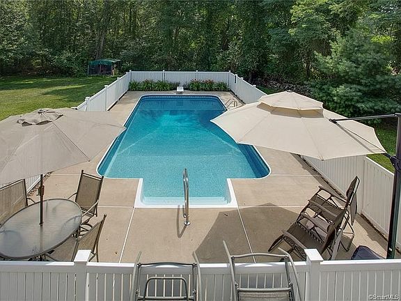 Come see this wonderful home close to the RI border but in the country! Hardwood flooring and a lovely kitchen with hickory cabinetry, open to the dining room and a large open living room with propane fireplace. One bedroom on the main floor and two large bedrooms upstairs. Wonderful built in swimming pool to cool off in summer with a deck that runs the full length of the house covered by a Sunsetter automatic awning. For those that love the country, there is a chicken coop and a 14x20' shed/potting shed. An automatic generator will keep you going when everyone else loses power plus the oversized 2 car garage/workshop is heated! What more could you want....Won't last long!