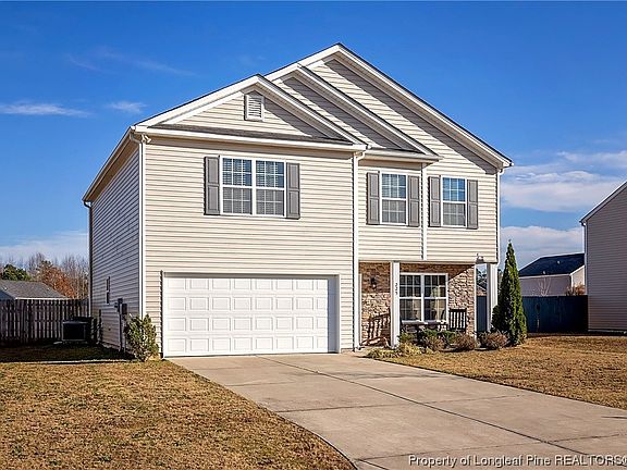Absolutely immaculate home in need of new owner. Located in the lovely neighborhood of Vandercroft Farms. Two story home features 3 Bedrooms, 2.5 baths and Bonus area with a large closet. A formal dining room w/wood-grained LVP floor, a kitchen with stainless steel appliances and an island make this home perfect for the chef as well as guests. Spacious living room with vaulted ceilings and fireplace. Master Bedroom has vaulted ceilings, WIC, garden tub, separate shower and dual vanities. A large backyard with a privacy fence makes this home perfect for those warm evening nights and entertaining. Enjoy the community pool area and club house or take an easy and convenient commute into town. Close to Fort Liberty. Make this home yours!